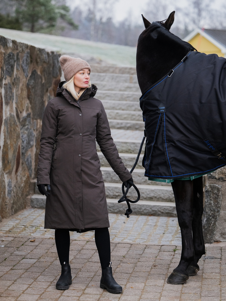 Hailey Winter Coat combines warmth, function and timeless design. The waterproof fabric with taped seams protects you from rain and snow, while the warmer padding keeps you comfortably warm during long days in the stable or on winter walks.- Warm and protective – Filled with warmer padding for winter use, plus a fleece-lined collar for extra comfort against your neck.