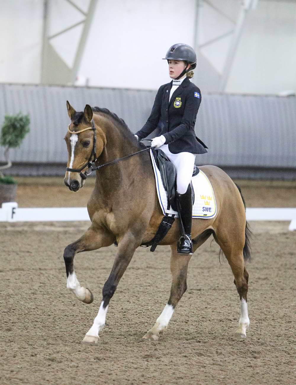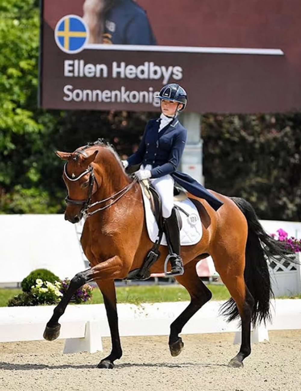 "Ellen has an impressive list of achievements. She has competed in 17 Swedish Championships with eight medals, four Nordic Championships with six medals, and earned a team bronze at the European Championships for Young Riders. In 2022, she was awarded the prestigious Ajax Scholarship. She trained her U25 horse Sonnenkönigin all the way from novice level to Grand Prix."