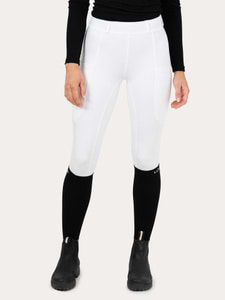 Hybrid Competition Breeches combine the timeless look of traditional breeches with the soft, flexible feel of riding tights. These white, full-grip competition breeches feature 4-way stretch fabric and a silicone-printed pattern that provides maximum grip in the saddle.