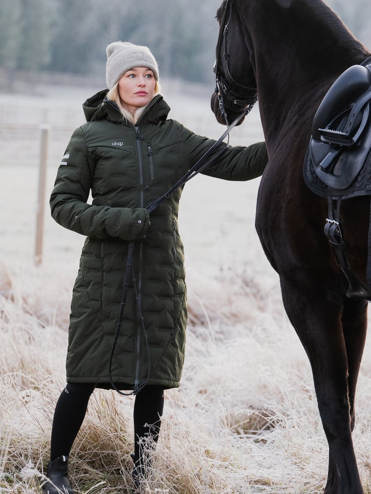 Like all Uhip garments, this winter riding coat is packed with innovative features designed for riders—but just as useful for any outdoor activity.• Stay warm in the saddle – Our signature fold-down cuffs provide extra warmth for your fingers while holding the reins. A two-way front zipper and rear riding vent allow you to sit comfortably in the saddle while keeping your legs warm.