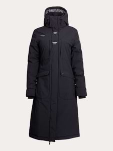 The insulation is a technical material with excellent warming properties due to its ability to reflect body heat. The outer fabric has some stretch and features a membrane that resists rain and wind. To ensure rain stays on the outside, the coat has taped seams. The high, comfortable collar with soft lining, together with the length of the coat, encloses the heat and ensures that your body heat keeps you warm without the air escaping.