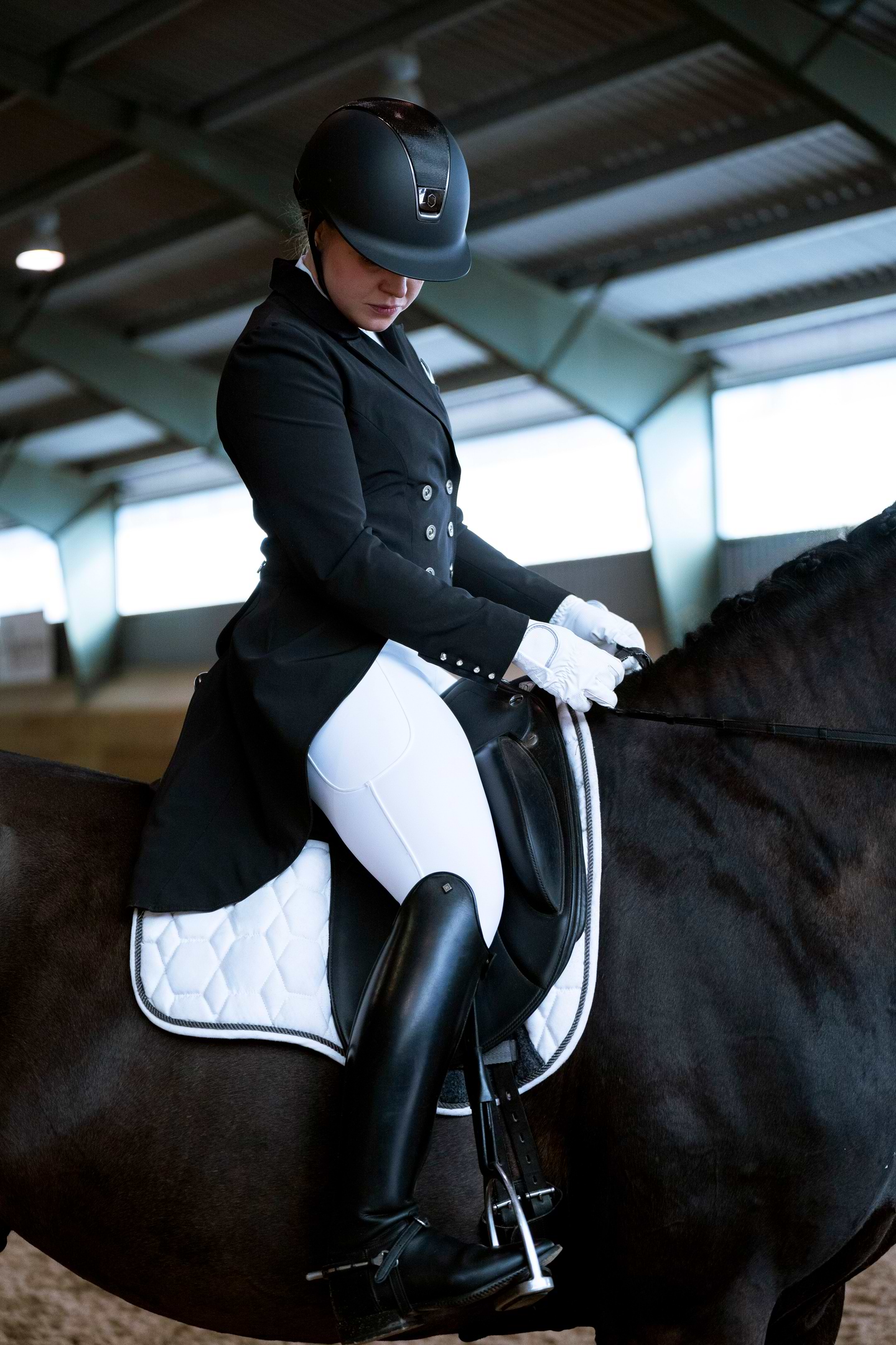 Full-grip riding tights and breeches are ideal for riders seeking additional support in the saddle, particularly within dressage where balance and control are essential. They are also an excellent choice for those looking to refine their seat and feel more confident and secure in their riding.