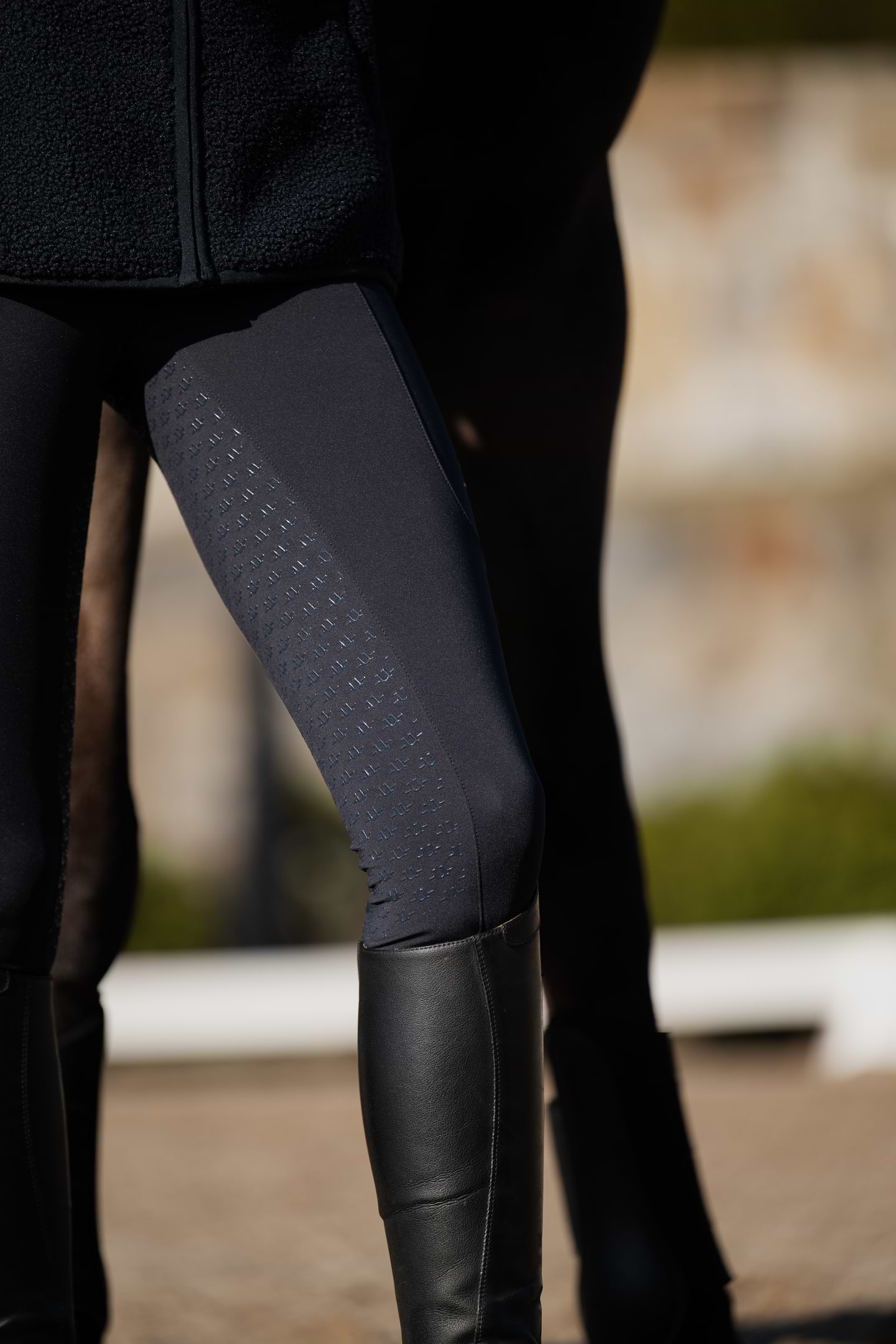 Full-grip styles provide consistent grip across the seat and legs, supporting a centred riding position with close contact to the horse’s movement. The result is enhanced stability and precision in the saddle. The silicone print extends from the seat down along the legs, increasing friction and helping you maintain a more balanced, secure, and steady position.