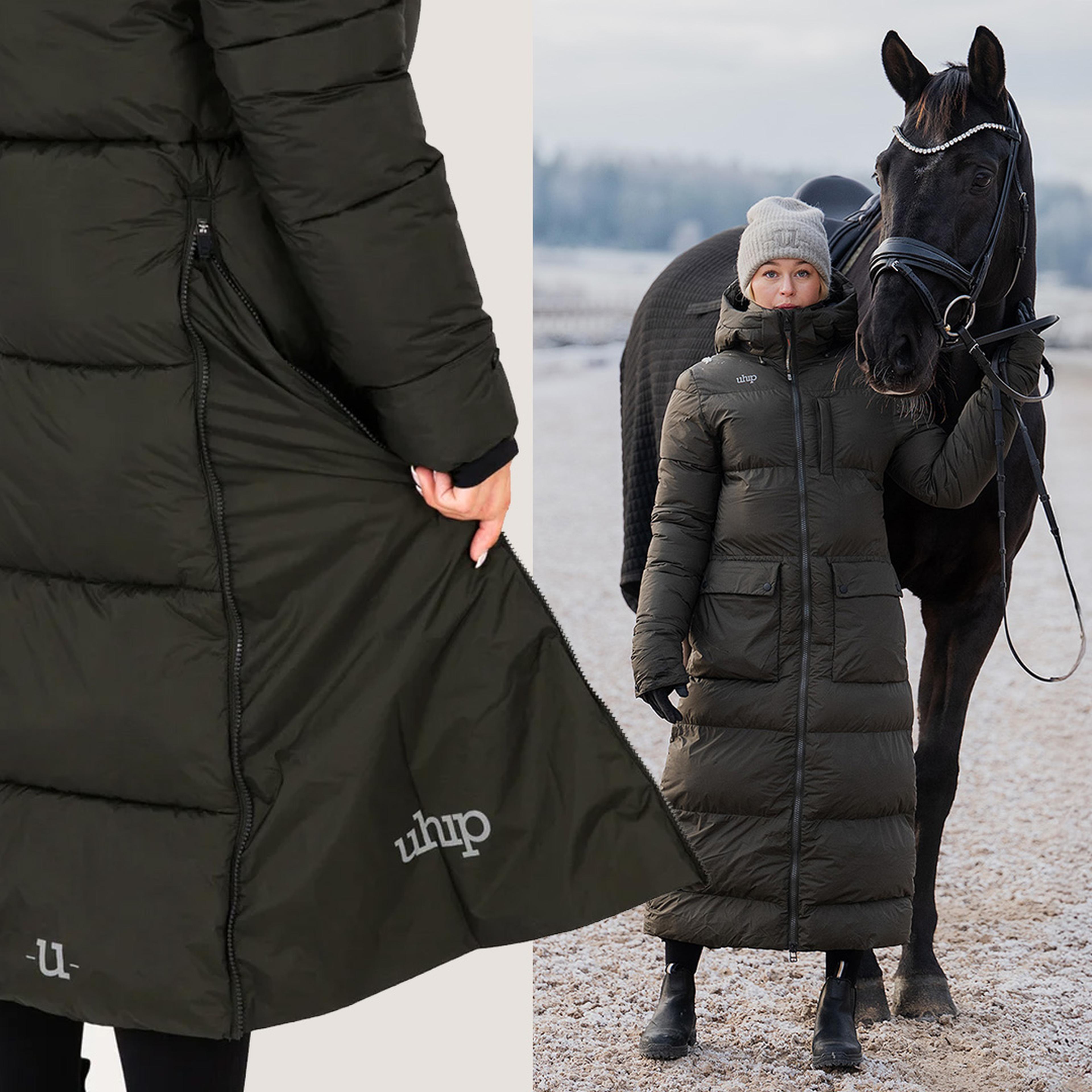 Uhip tar varma ridkappor till nya nivåer med denna extra långa vinterkappa som sträcker sig ända ner till anklarna. Den varma kappan har rikligt med isolering och håller dig garanterat varm även under de riktigt kalla vinterdagarna.