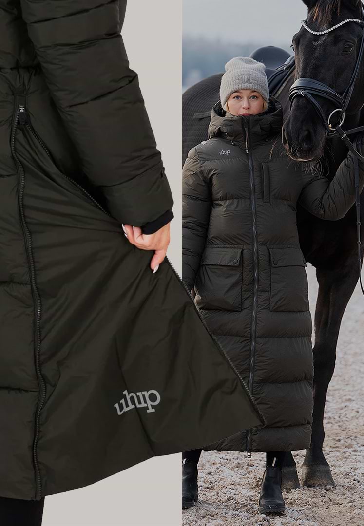 Oavsett om du söker en lång ridjacka med maximal värme eller en mångsidig vinterkappa för hundträning, har Uhips mammakorvar detaljer som gör vardagen enklare. Tvådelade dragkedjor, sprund bak, nedvikbara ärmslut och funktionella fickor är standard i designen. Resultatet är en vinterridkappa som både ser bra ut och fungerar i alla väder – skapad för dem som vill hålla sig aktiva hela vintern.
