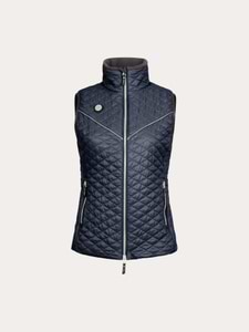 - Ridvästen har en hög krage med ribbad insida, tvåvägsdragkedja med skydd för både sadel och haka samt två handfickor. Den har snygga och praktiska reflexpasspoaler på bröstet och ryggen.