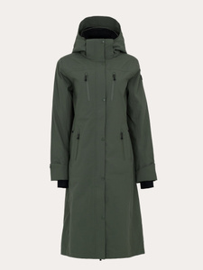 Rainy är designad för mångsidighet och utrustad med smarta funktioner. Njut av din ridtur, cykeltur eller skogspromenad med vår tvåvägsdragkedja framtill och praktiska sprund bak. Dessa detaljer ger rörelsefrihet och gör att du kan sitta i sadeln eller på cykeln medan jackan hänger ner och skyddar benen. På insidan finns elastiska benband som kan fästas runt låren för att förhindra att jackan fladdrar i vinden. Uppvikbara muddar ger extra skydd mot regn och kyla, och för extra värme finns handledsvärmare med tumhål.Tack vare de reflekterande detaljerna både fram och bak syns du lätt i mörker. Huvan är hjälmanpassad, avtagbar och justerbar både framtill och baktill för bästa passform. Utseendet är stilrent och klassiskt, vilket gör Rainy till din bästa vän de dagar du vill se välklädd ut när du kliver ut.