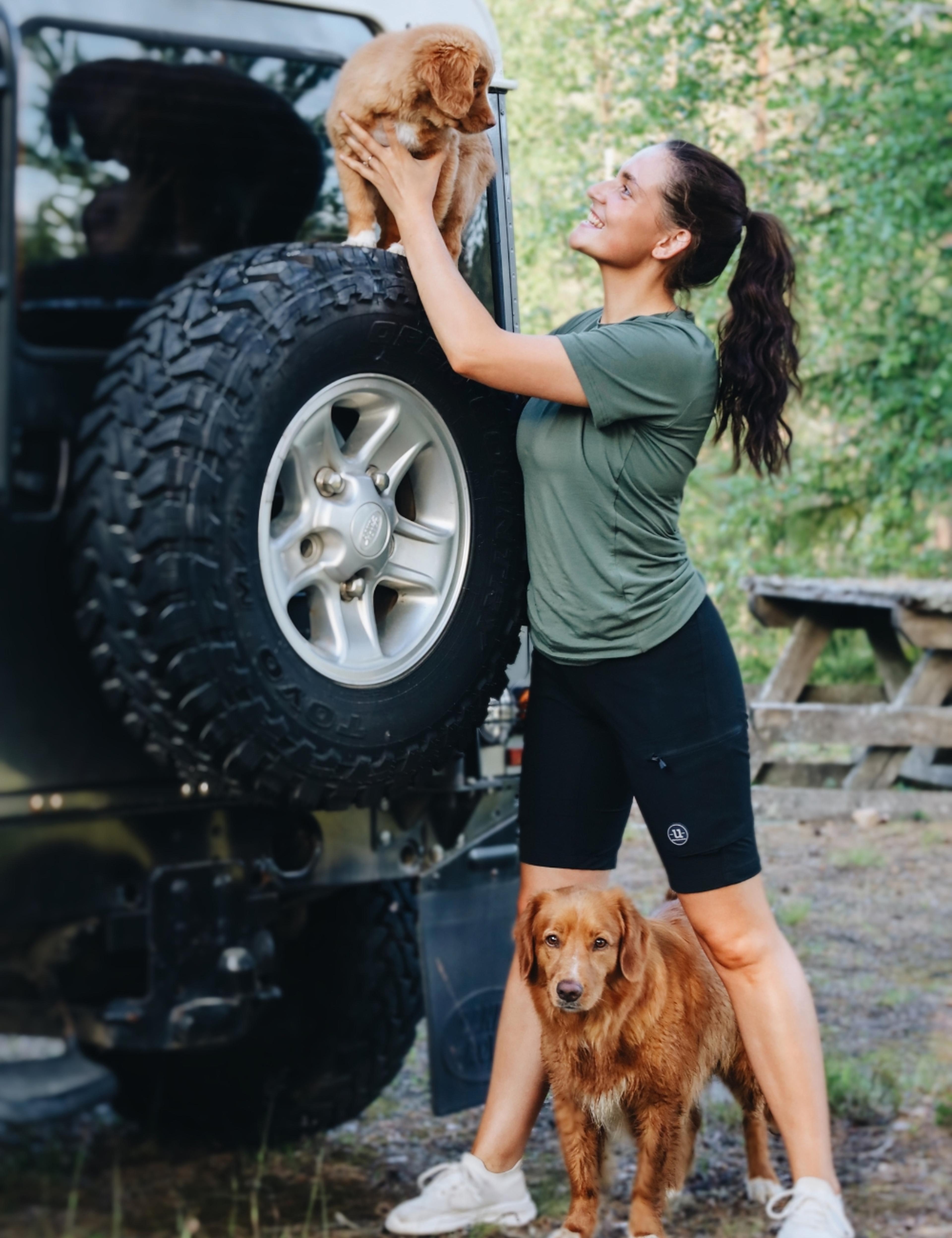 "Hundarna är hennes största passion, och tillsammans tränar och tävlar de i en rad olika hundsporter – allt från lydnad och rallylydnad till jaktprov, utställning och ibland även agility, viltspår, fågeljakt och älgjakt."